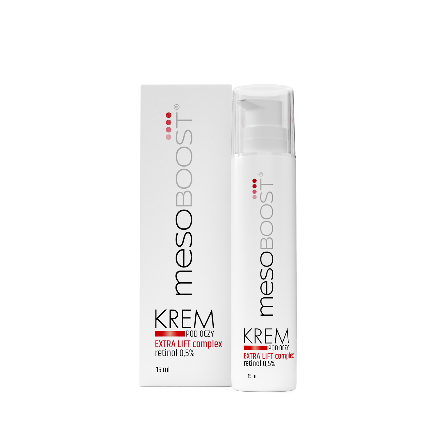 Krem pod oczy mesoBoost z linii EXTRA LIFT complex retinol 0,5% zawiera składniki o działaniu odmładzającym oraz redukującym opuchliznę. 0,5% retinol wspomaga regenerację oraz efekt liftingu skóry. Ekstrakt z żeń-szenia dodaje skórze energii i odmładza ją, a ekstrakt z ostropestu koi wszelkiego rodzaju podrażnienia.