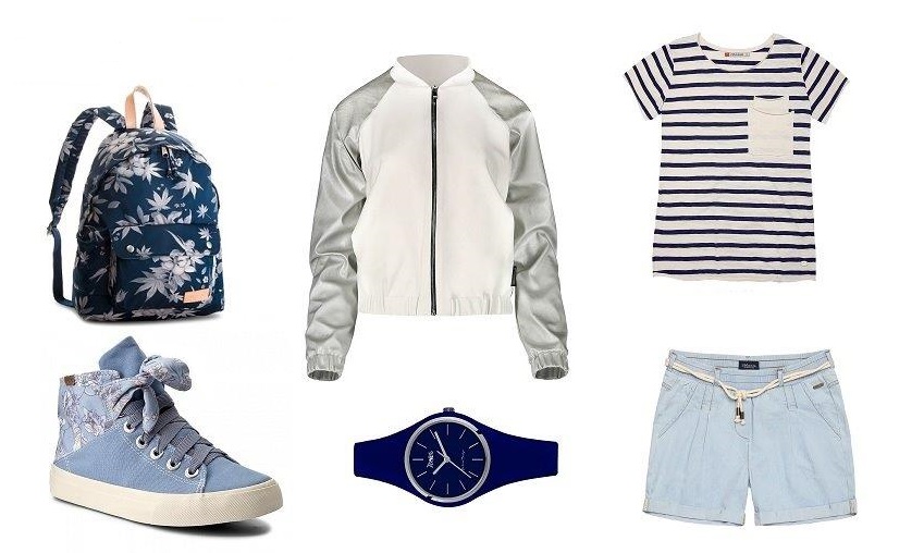 Plecak Eastpack/eobuwie.pl 259 zł, buty Coca Cola/eobuwie.pl 179 zł, bomberka Monika Świderska 299 zł, zegarek TooBe 170 zł, t-shirt Volcano 39,90 zł, szorty Volcano 89,99 zł