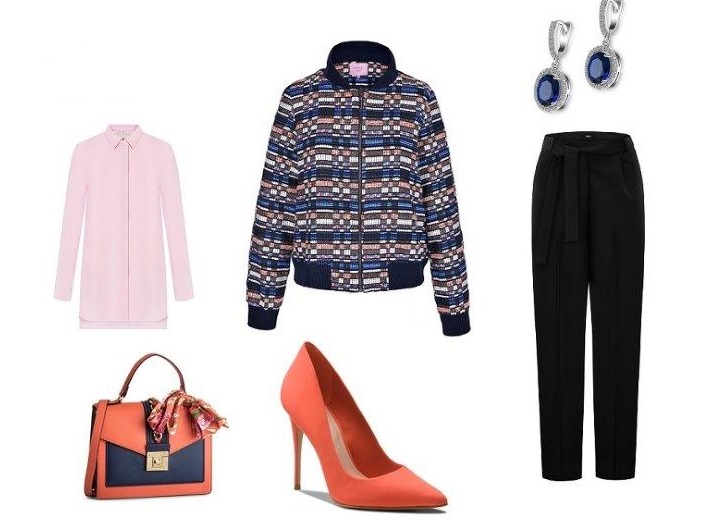 Koszula Ela Piorun 220 zł, torba Aldo 229,90 zł, bomberka Missu Design 260 zł, buty Aldo 399,90 zł, kolczyki Lejdi.pl 59,90 zł, spodnie Furelle 490 zł