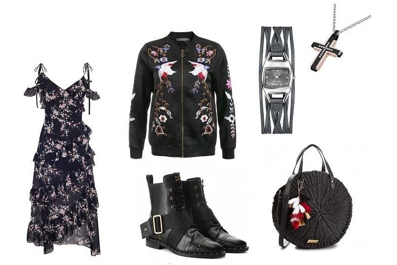 Sukienka Belette 590 zł, bomberka Yoshe 425 zł, buty Elisabetta Franchi/eobuwie.pl 2699 zł, zegarek Go Girl 280 zł, koszyk Gioseppo