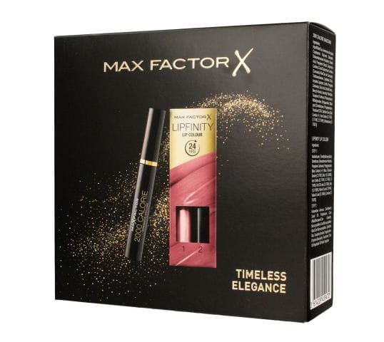 Zestaw Max Factor Lipfinity Lip Colour, dwufazowa pomadka do ust 335 Just In Love + top coat + pogrubiający tusz do rzęs Black. Cena promocyjna 44 zł (regularna 79 zł)