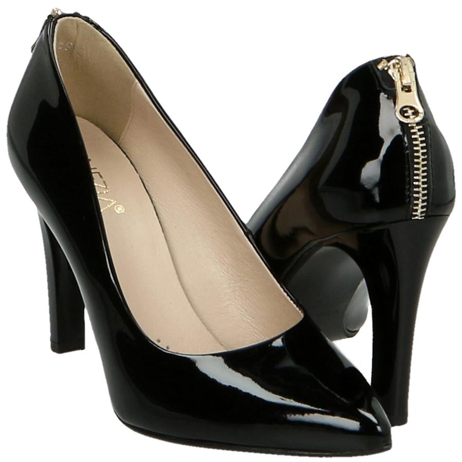 Pierwsze szpilki pojawiły się w latach 20. XX wieku i do dziś jest to jeden z najpopularniejszych rodzajów obuwia dla kobiet. Odpowiednio wykonane i dobrane czółenka damskie na obcasie spełnią oczekiwania każdej bizneswoman. Jeśli lubisz ten fason, to polecamy czarne szpilki skórzane z błyszczącym suwakiem na zapiętku. Takie kontrastowe połączenie złotego zamka z lakierowaną skórą tworzy idealną całość. Model w szpic, choć na wysokim obcasie, jest stabilny i bardzo wygodny, a do tego niezwykle szykowny. Miękkie wkładki typu soft step wpływają na lepszą amortyzację stopy i poprawiają komfort chodzenia.