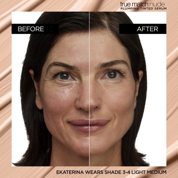 Odkryj nowość True Match Nude Skoncentrowane serum w podkładzie wyrównujące koloryt skóry, które dzięki 1% kwasu hialuronowego nadaje skórze sprężystość. Idealne połączenie pielęgnacji i makijażu – ta innowacyjna formuła łączy w sobie zalety serum pielęgnacyjnego z blaskiem i kryciem podkładu. Wzbogacone w 1% kwasu hialuronowego, nawilżające serum nadaje skórze sprężystość po 6 tygodniach codziennego stosowania. Jednocześnie jest nasycone świetlistymi pigmentami, które zapewniają promienne, nieskazitelne krycie niczym podkład. Efekty pielęgnacji skóry są widoczne natychmiast. Formuła idealnie dopasowuje się do skóry, pozostawiając ją naturalnie świetlistą dla efektu no makeup. Konsumenci zgadzają się co do rezultatów: 93% potwierdza wyrównanie kolorytu skóry i jej jednolity wygląd*, 87% potwierdza, że cera staje się bardziej promienna i rozświetlona*, 83% potwierdza, że serum minimalizuje widoczność niedoskonałości*.; 88% kobiet zgadza się, że skóra sprawia wrażenie bardziej elastyczne