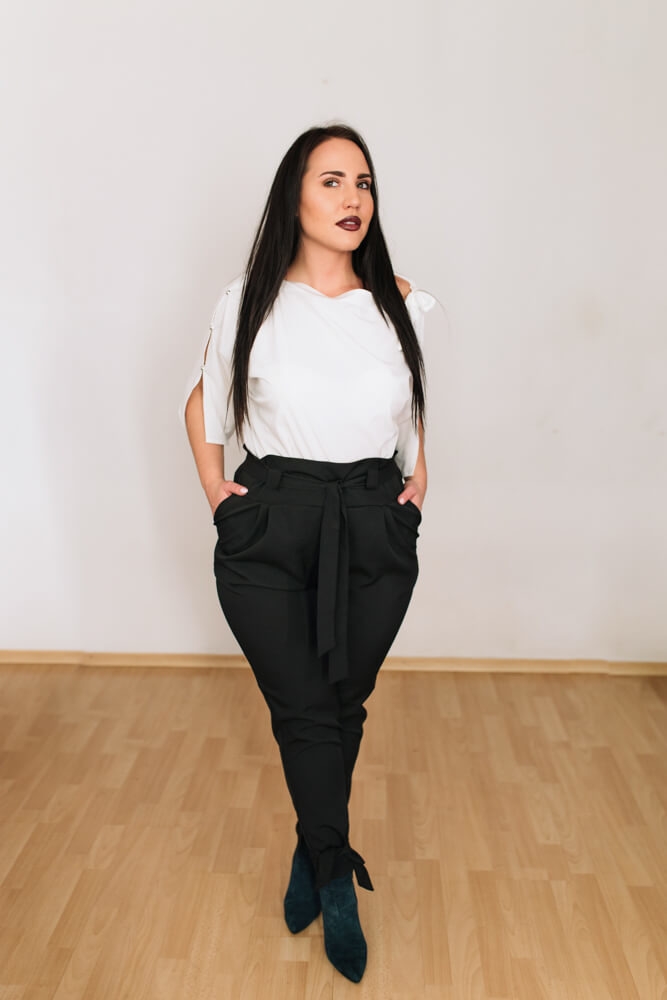 Posiadaczki figury plus size powinny unikać wąskich krojów nogawek, nawet jeśli mają szczupłe nogi. W przypadku krągłego brzucha, prosta nogawka wyłącznie uwydatni dysproporcję między szerszą górną partią ciała, a szczupłymi nogami. Fasony te nie są również polecane dla kobiet, które mają szerokie ramiona i klatkę piersiową lub brakuje im wcięcia w talii. W tej sytuacji warto postawić na spodnie w kant, których nogawka zakrywa obcas. Buty w tym samym kolorze co spodnie XXL dodatkowo optycznie wyszczuplą twoje nogi.